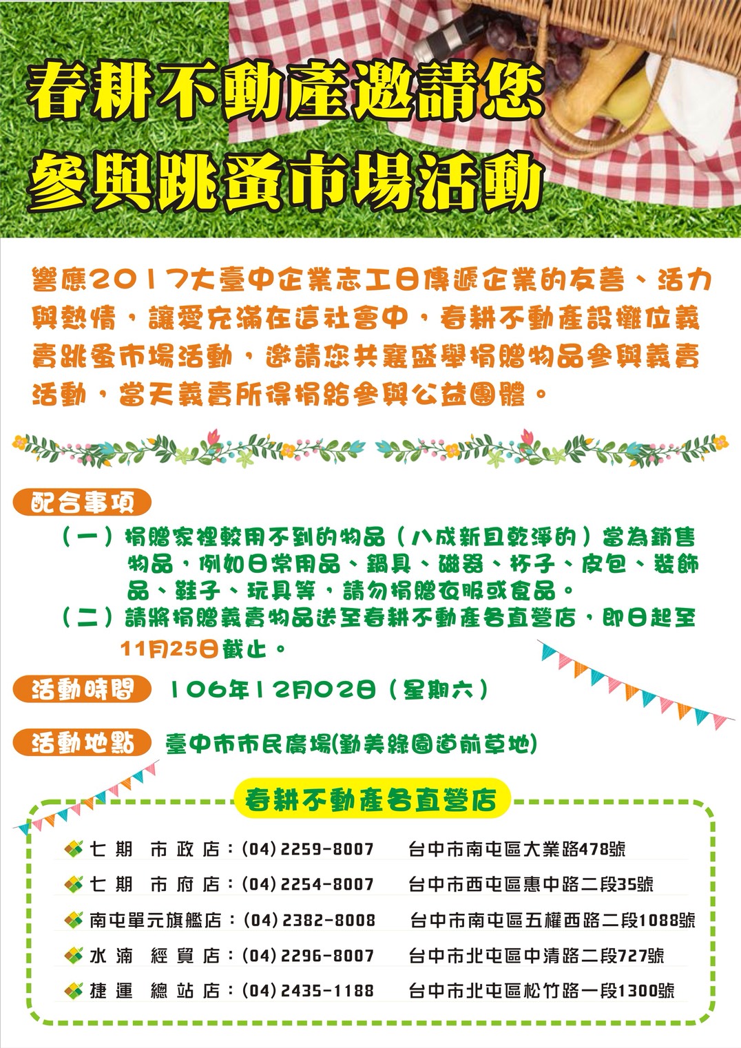 春耕不動產邀請您 參與跳蚤市場活動